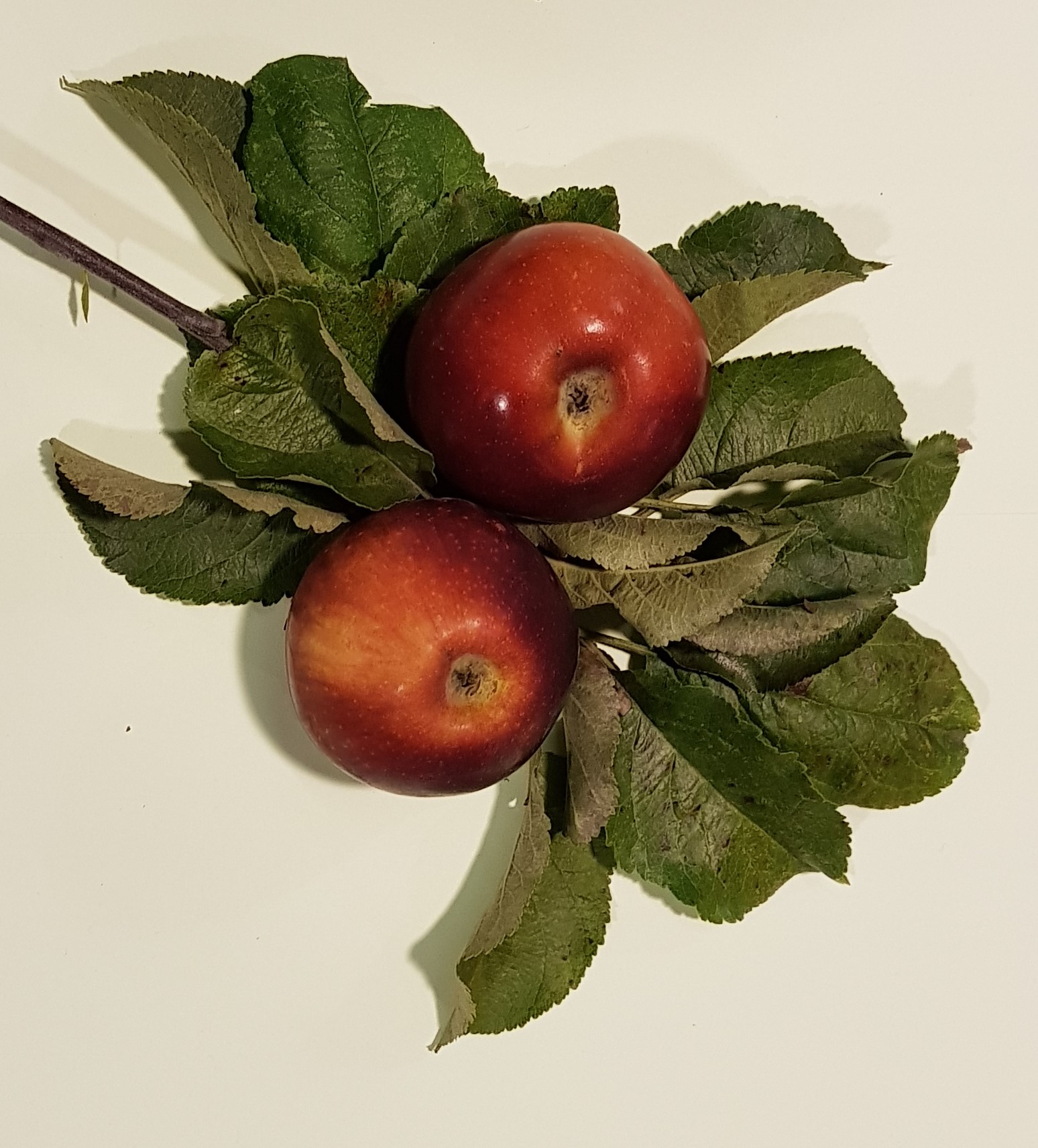 - Plody: středně velký až velký, kulovitý až ploše kulovitě kuželovitý, základní barva je zelenožlutá, krycí je červená, celoplošně rozmytá, slupka je střední, hladká, bez ojínění